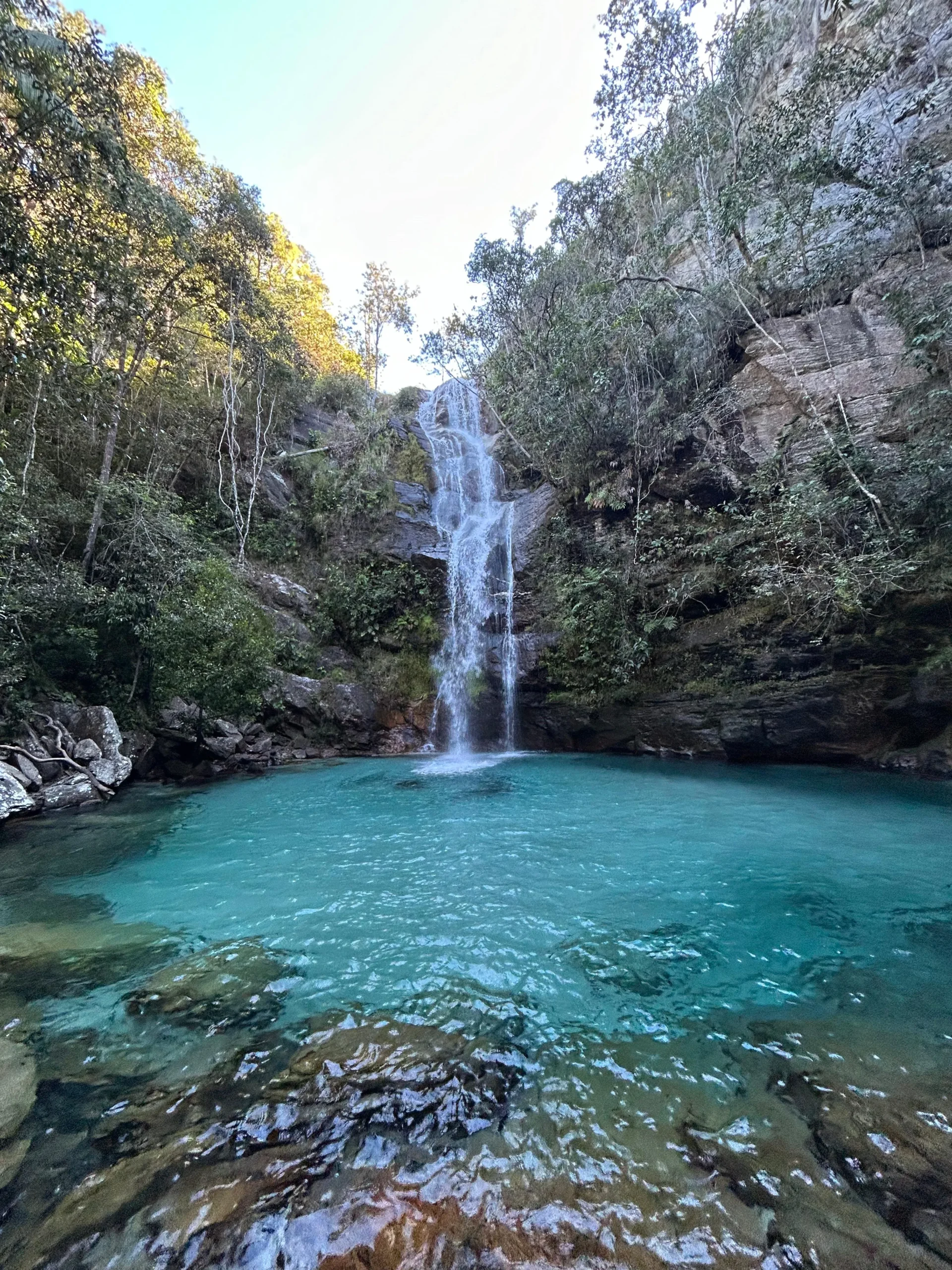 A Cachoeira Santa Bárbara possui água azul turquesa, uma tonalidade pouco vista na região. Certamente é um dos principais destinos dos visitantes da Chapada dos Veadeiros. Fica localizada no município de Cavalcante dentro da comunidade Kalunga, terra quilombola de mais de 250m hectares intocados e preservados.