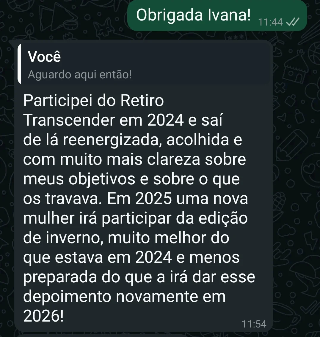 Acredito que toda cura profunda também reflete o campo espiritual  — por isso, integro ao meu trabalho vivências como o Temazcal, práticas somáticas e experiências simbólicas, que ajudam a restaurar a segurança, a presença e a conexão consigo mesma, proporcionando mais liberdade emocional e autoconfiança!