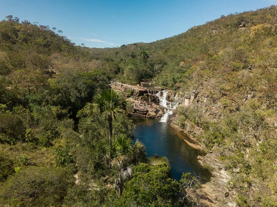 A Catarata dos Couros é um espetáculo grandioso da Chapada dos Veadeiros, com uma sequência impressionante de quedas d’água que se desdobram em poços cristalinos e corredeiras.